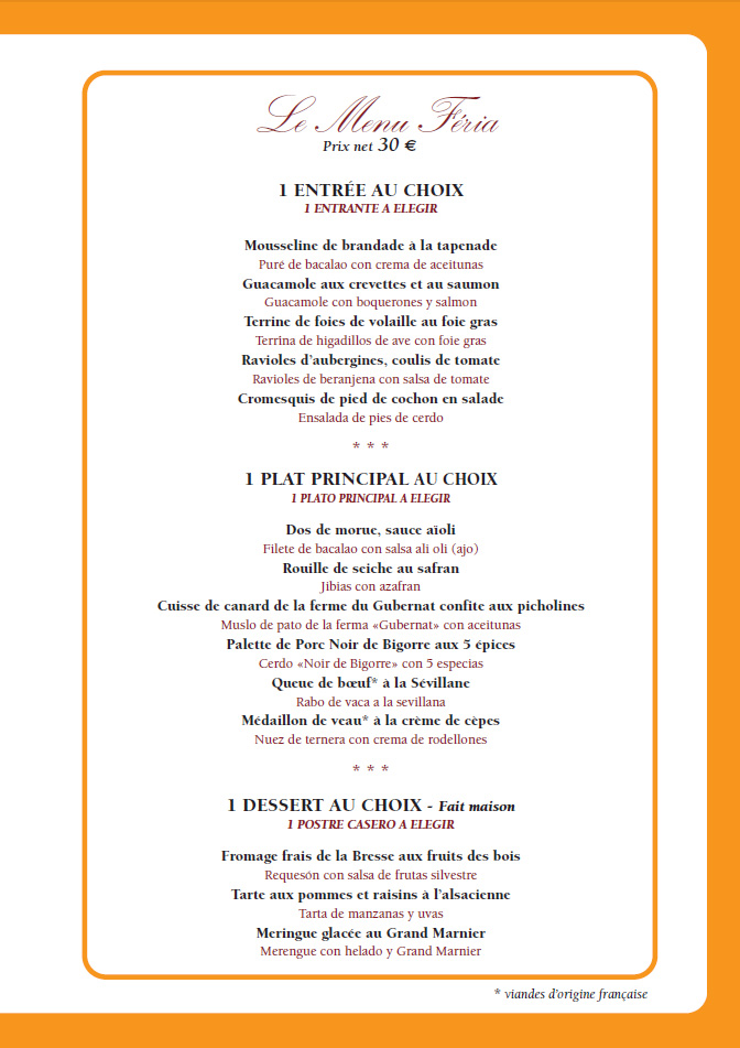 Un menu spécial vous est proposé à l'occasion de la fête de la gastronomie qui se tiendra les 25 et 26 septembre 2015.
